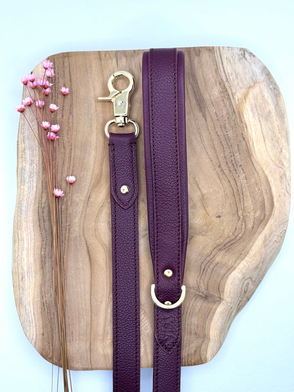 - La doublure des poignées : il s'agit du cuir présent à l'intérieur des poignées. Il existe plusieurs possibilités : du cuir rose gold (CHAMPAGNE), argenté (SILVER), doré (GOLD), bronze (BRONZE) ou ton sur ton (même coloris que le corps de la laisse).